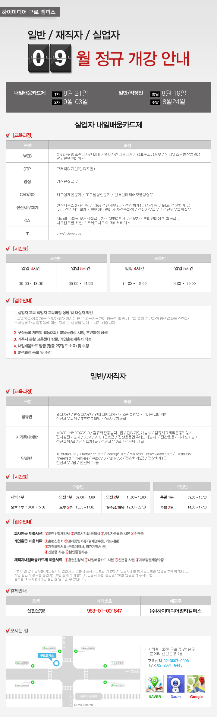 [구로] 8~9월 정규개강 안내